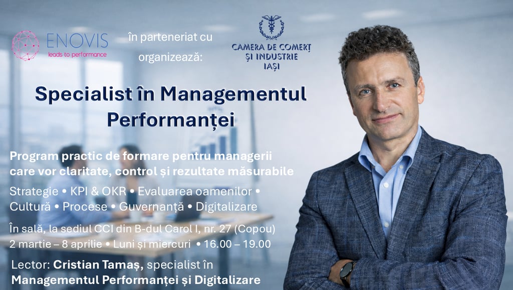 Program pentru managerii care vor să conducă prin sisteme, nu prin improvizație.